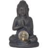 Naše solární dekorace Buddha je dekorace v šedé barvě se světle bronzovým broušeným povrchem, který se ve tmě rozzáří v čiré skleněné bublině teplou bílou září. Toto solární osvětlení se snadno umístí a je krásnou dekorací ve dne i v noci na vaší zahradě, balkónu nebo terase. Umístěte solární dekoraci tam, kde může slunce během dne dosáhnout na panel, abyste získali maximální nabití přiložené baterie.