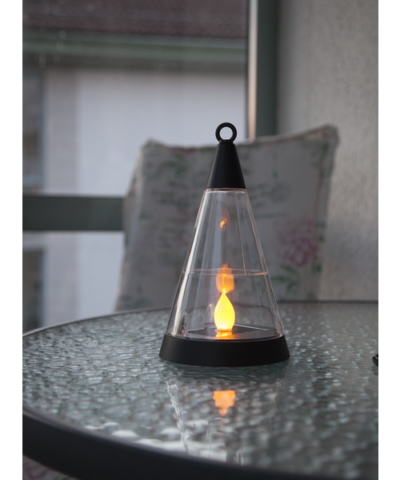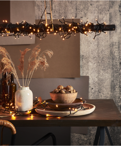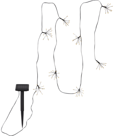 Decoración solar en forma de regadera por cuyo caño caen gotas de rocío.