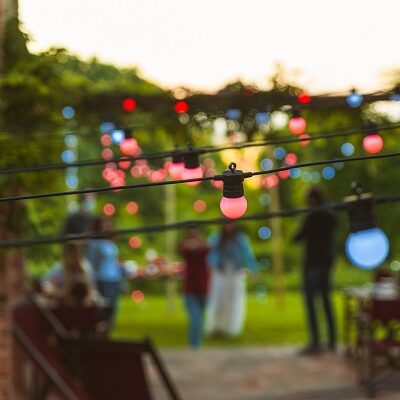 Festoon LED-valoketju roikkuvilla lampuilla on upea tuote, joka sopii täydellisesti koristeelliseen ja käytännölliseen puutarhan tai terassin valaistukseen. Antaa mukavan, lämpimän valkoisen salamaefektin. Se luo erinomaisen ja kodikkaan tunnelman.