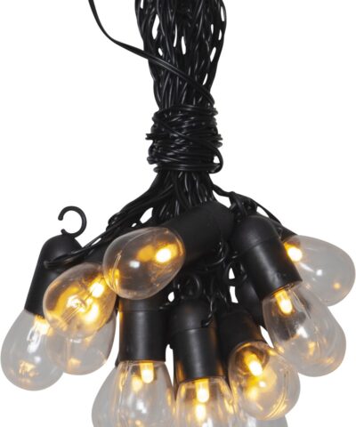 Solar-powered light chain with eight large plastic balls, each 8 cm, in each ball there is an engraved plastic disc that spreads out the warm white glow. Separate panel that makes it easy to have the light chain placed in the shadow, and the panel into the sun.