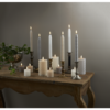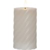 Bézs gyertya csavart viasszal a Flamme sorozatunkban. A természethű láng meleg fehér fénnyel világít. Beépített időzítővel.