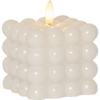 Flamme Dot yra kvadratinė žvakė, pagaminta iš šviesiai balto vaško su burbuliuojančiu paviršiumi. Ši LED žvakė bus graži puošmena tiek viena, tiek grupėmis kartu su kitomis mūsų serijos Flamme žvakėmis. Jis turi laikmačio funkciją ir kai jungiklis veikia laikmačio režimu, šviesa šviečia apie 25 dienas gražia tikroviška šiltai balta liepsna.