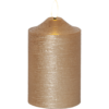Złota świeca woskowa w naszej rodzinie Flamme z płomieniem wyglądającym jak naturalny, który świeci w ciepłej bieli. Świeca ma wbudowany timer.