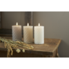 White candle with twisted wax in our Flamme series. The true-to-nature flame lights up with a warm white glow. With built in timer.