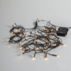 Light chain with 64 warm white LED lights and with battery box for in- or outdoor use, run by 3xAA batteries. For optimal battery life, the light chain has repeating timer function, 6h on and 18h off.