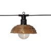 Exkluzívna párty svetelná reťaz so 6 svetlami. Každá lampa s plastovým hnedým tienidlom. Ozdobte si terasu alebo záhradu touto svetelnou reťazou. Dáva nádherný lesk. Čierny kábel so 70 cm medzi svietidlami.
